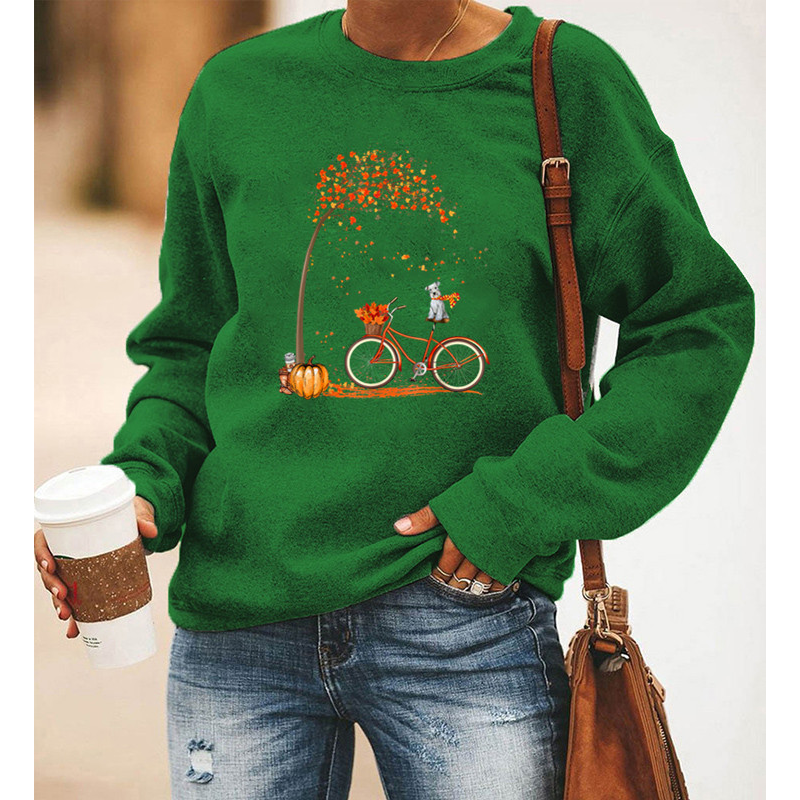 Bicycle Printing Long Sleeve Crew Neck Sweater Women Green XXXL