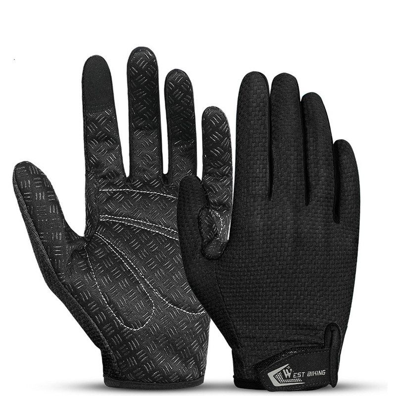 Bicycle Riding Long Finger Gloves Shock Absorption Non Slip Touch Screen Black L