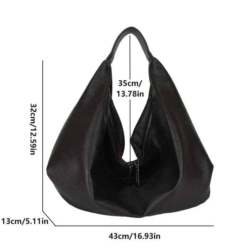 Big Black Shoulder Bags for Women Large Hobo Shopper Bag Solid Color Quality Soft Leather Crossbody Handbag Lady Travel Tote Bag