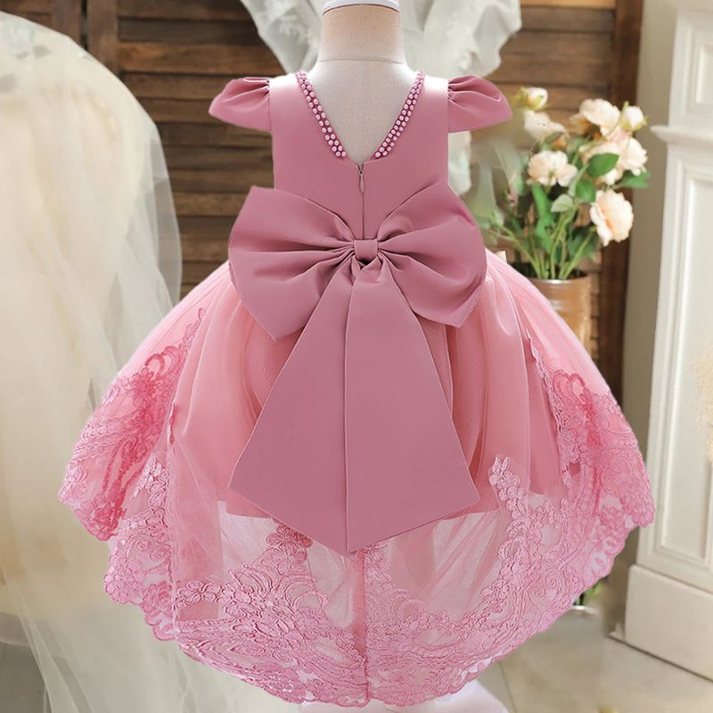 Big Bow Baby Girls 1st Birthday Princess Dress Toddler Infant Embroidery Flower Baptism Girl Party Dresses for Kids Wedding Gown