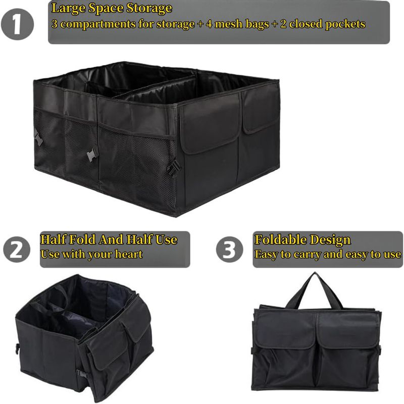 【Mass Storage】 This trunk organizer is divided into two large compartments with a removable velcro strap that decides to divide another compartment for you, plus 6 side pockets so you can quickly divide your items to meet your storage needs and help you easily see what's stored.
