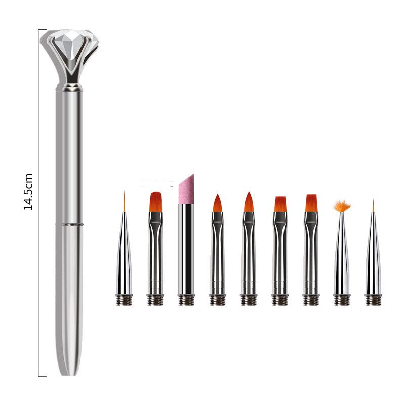 Packing list: 1*Pen holder+2*Drawing pen+1*Round head phototherapy pen+1*Quartz polishing pen+1*Carving pen+1*Crystal pen+1*Flat head phototherapy pen+1*Flat head line pen+1*Fan shape pen