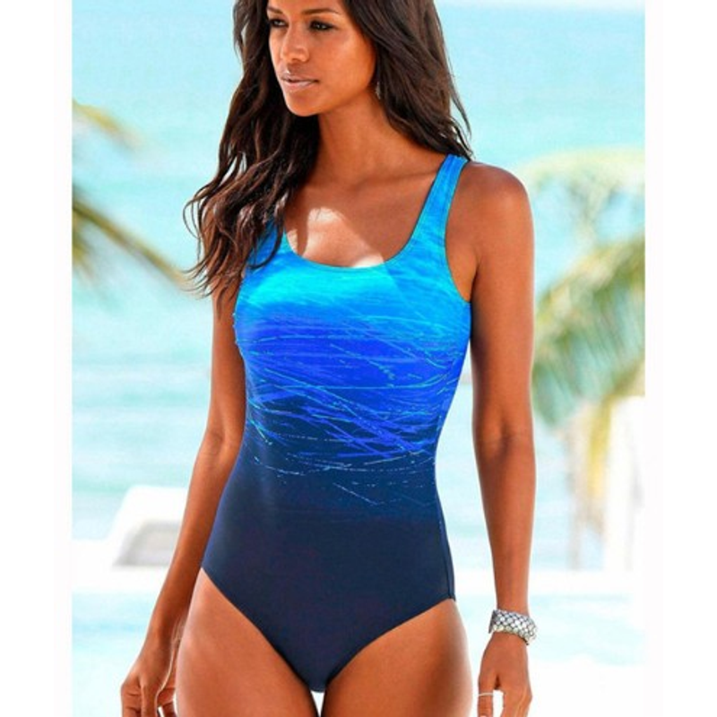 Big Size 2021 One Piece Swimwear Women Vintage High Top Swimwear Bandages Neck Bandage CRISS Back Can Sunbathe Blue XL