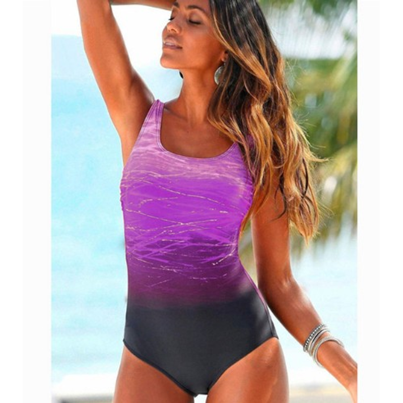 Big Size 2021 One Piece Swimwear Women Vintage High Top Swimwear Bandages Neck Bandage CRISS Back Can Sunbathe Purple M