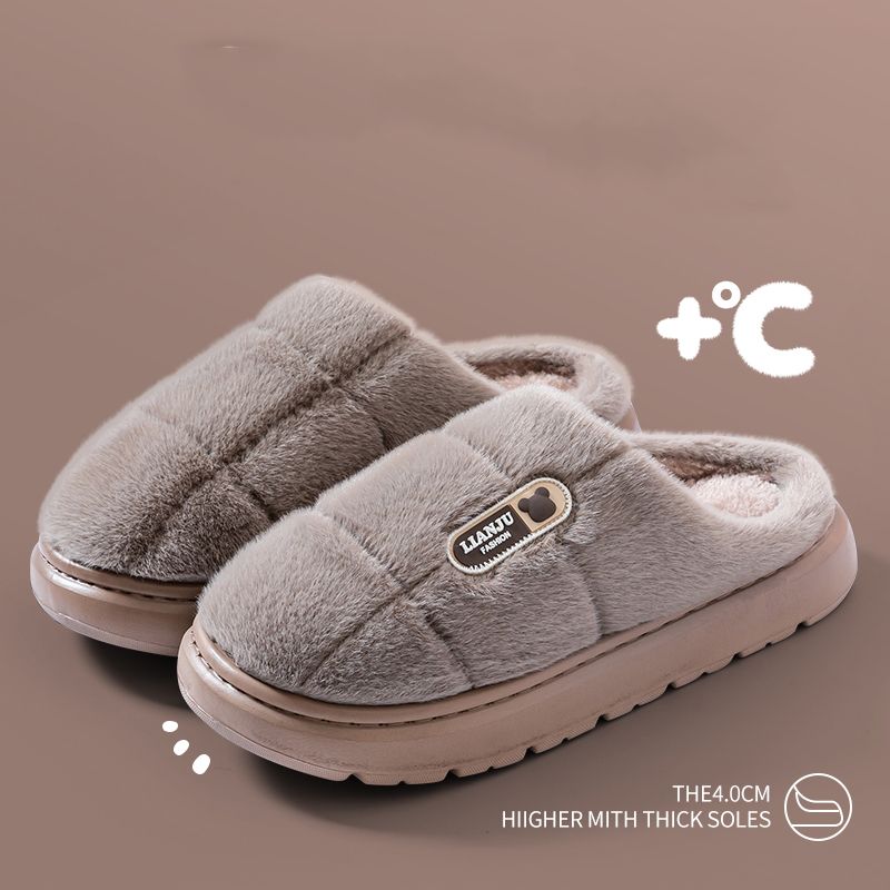 Big Size 50 51 Winter Slippers Women Men Thick Sole Indoor Home Warm Couples Shoes Non-Slip Flat Platform Women's Cotton Slipper