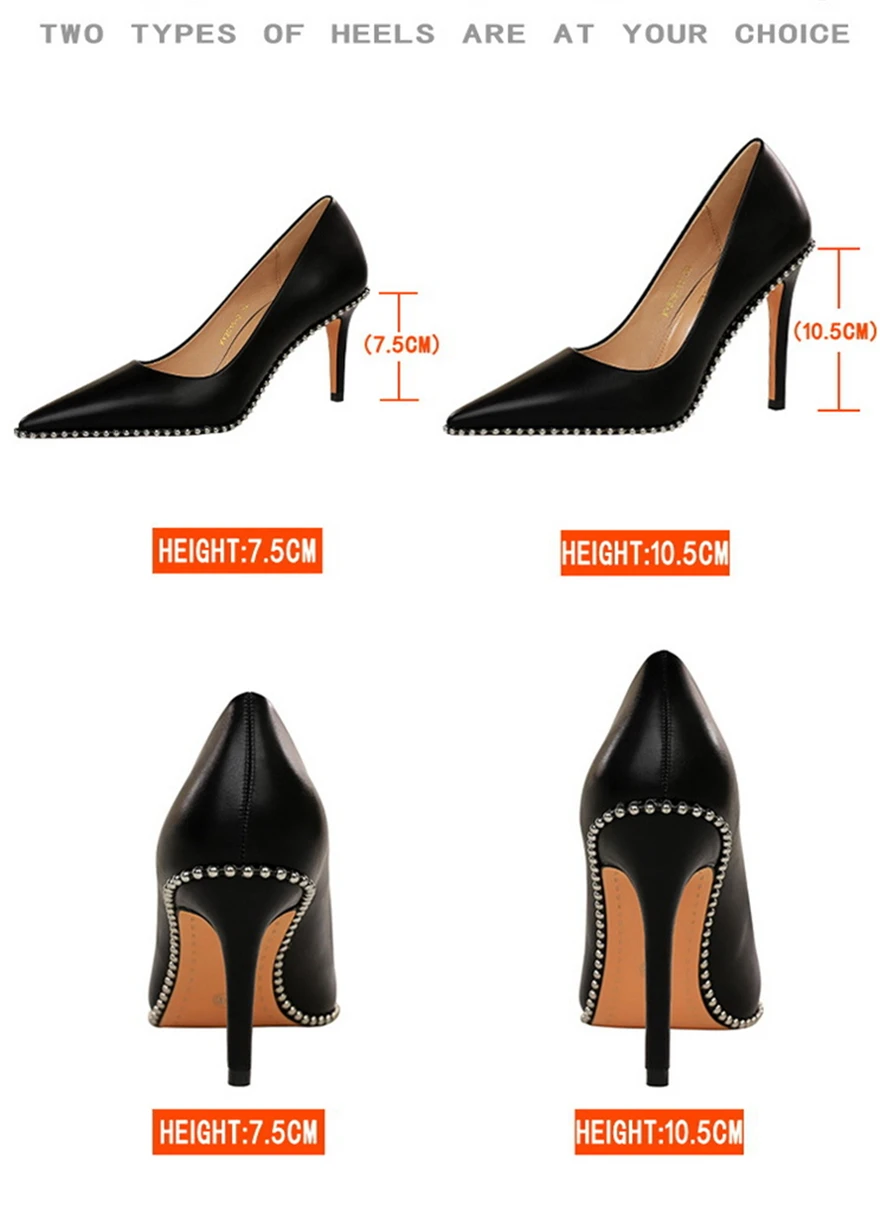 BIGTREE Sexy Rivets String Bead Women's Shoes Party Soft Leather Pointed Toe High Heels Pumps Spring Shallow Office Shoes Women