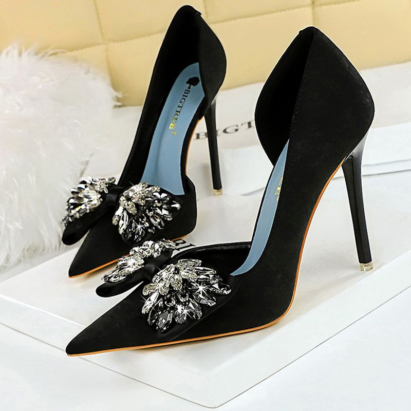 BIGTREE Shoes Rhinestone Bow Women Pumps Luxury Banquet Shoes Sexy High Heels Women Stilettos Party Shoes Large Size 41 42 43