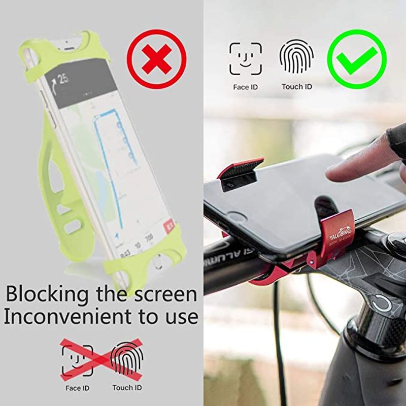 【Robust & Durable】: Aluminum alloy material can withstand rain and sun without rusting. The use time is 10 years longer than the silicone bicycle phone stand