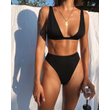 Bikini Deep V Swimsuit Beach High Waist Two Piece Brazilian Swimwear Bathing Suit Black S