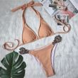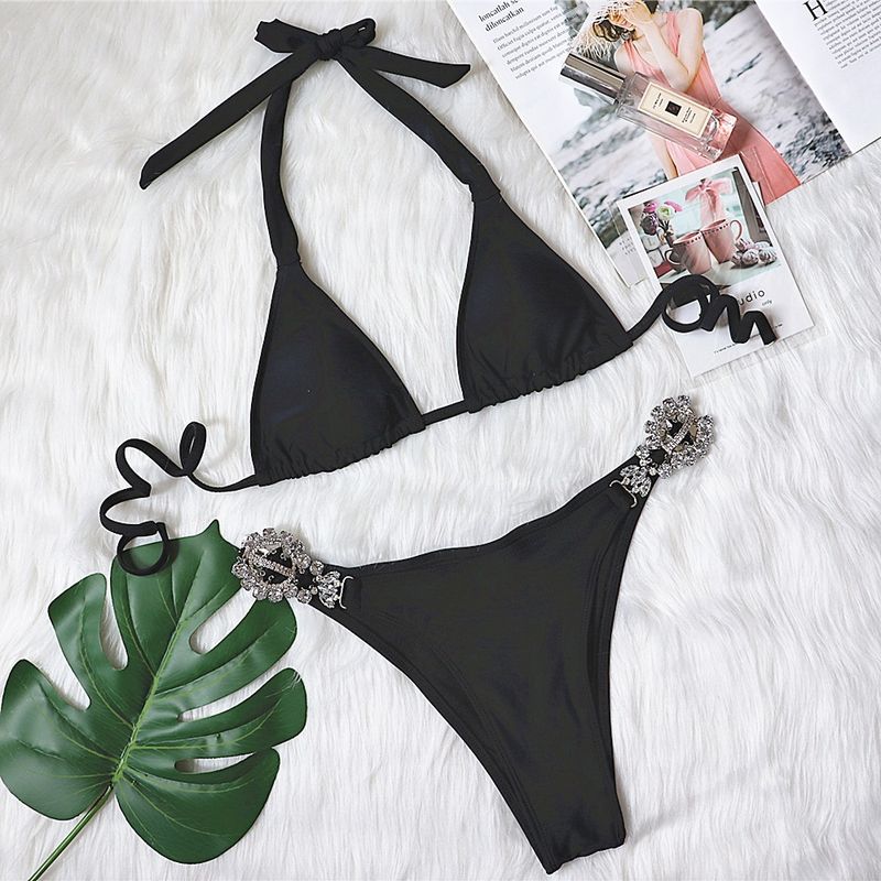 Bikini Plain Female Split Strap Luxury Crystal Diamond Swimsuit Purple S