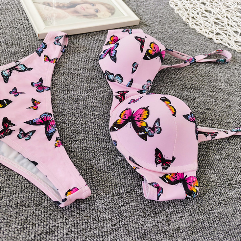 Bikini Sexy Butterfly Print Bikini High Quality Hard Bag Swimsuit Women Pink L