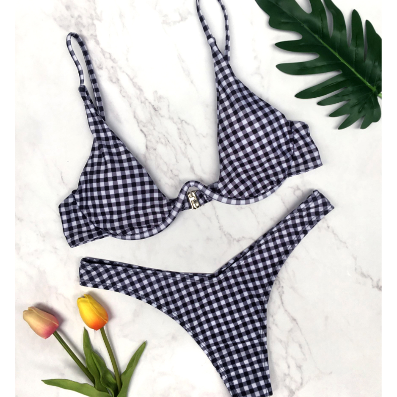 Bikini sexy multi-color optional swimsuit Black grid L