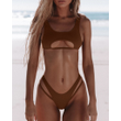 Bikini Women's Solid Color Split Swimsuit Hollow Snake Fabric Swimwear Beige S