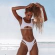 Bikini Women's Solid Color Split Swimsuit Hollow Snake Fabric Swimwear Dark Purple S