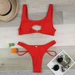 Bikini Women's Solid Color Split Swimsuit Hollow Snake Fabric Swimwear Red S
