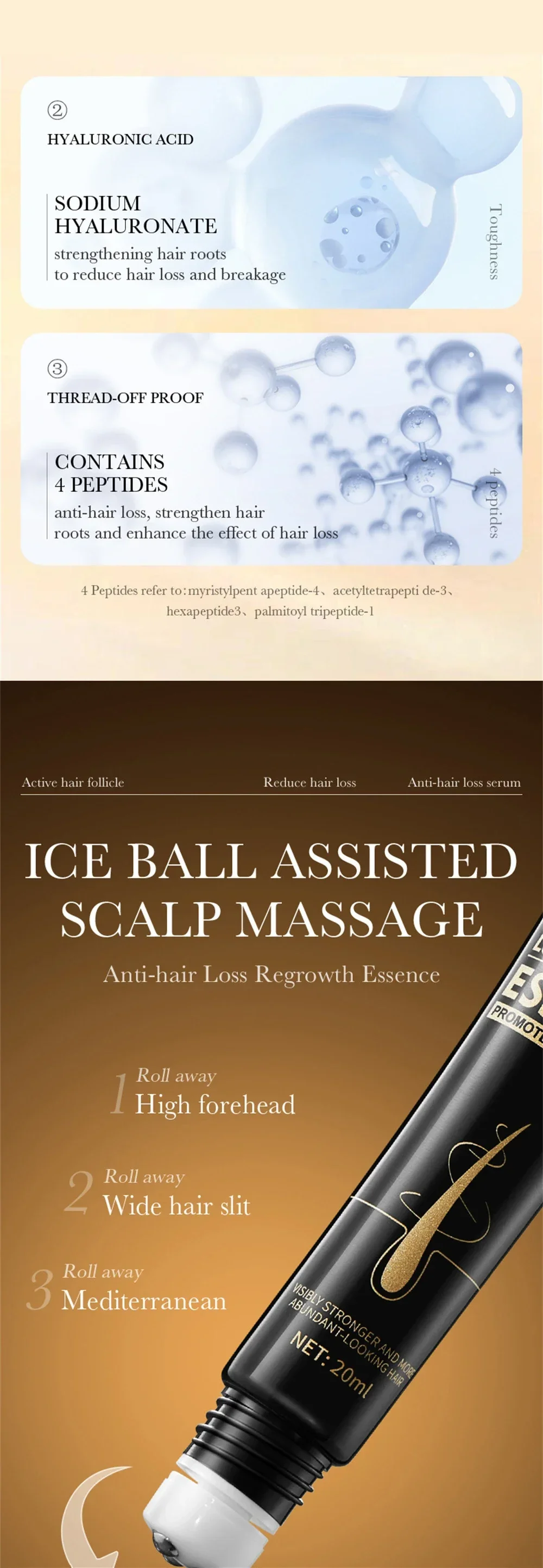 ▶Usage: Evenly smear essence on the scalp hair root after shampoo, and massage the scalp with beads. Apply it every night before going to bed. It can be used many times.