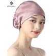 Birdtree 100% Real Silk Turban Bonnets Female Double layered Sleeping Night Cap Pure Silk Hair Wrap Cap For Curly Ladies Headwrap
