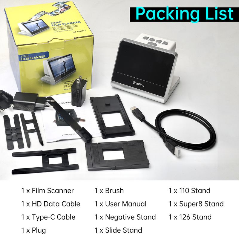 Easy to Use: No driver or software is needed. Color 5" LCD HD screen design which support 22W Pixels display, and it's with 8 system languages -Chinese / T-Chinese / English / French /German / Italian / Spanish / Japanese, free to operate and enjoy the pictures just in the film scanner.