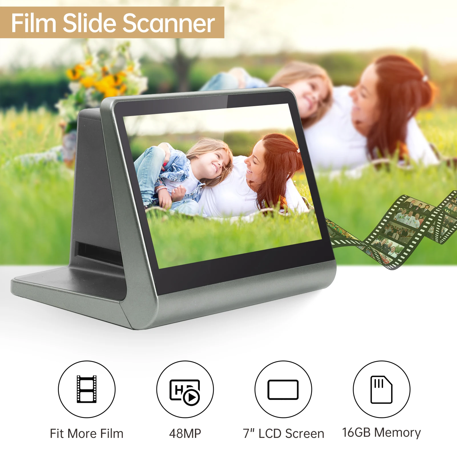 Bisofice Film and Slide Scanner 7'' LCD Screen Free APP Support 48W Pixels Display Built-in 16GB Memory for 135 Film/126KPK