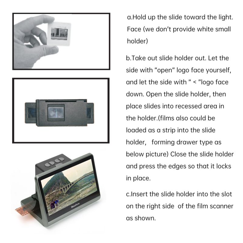 Easy to Use: No driver or software is needed. Color 7" LCD HD screen design which support 48W Pixels display, and it's with  8 system languages -Chinese / T-Chinese / English / French /German / Italian / Spanish / Japanese, free to operate and enjoy the pictures just in the film scanner.