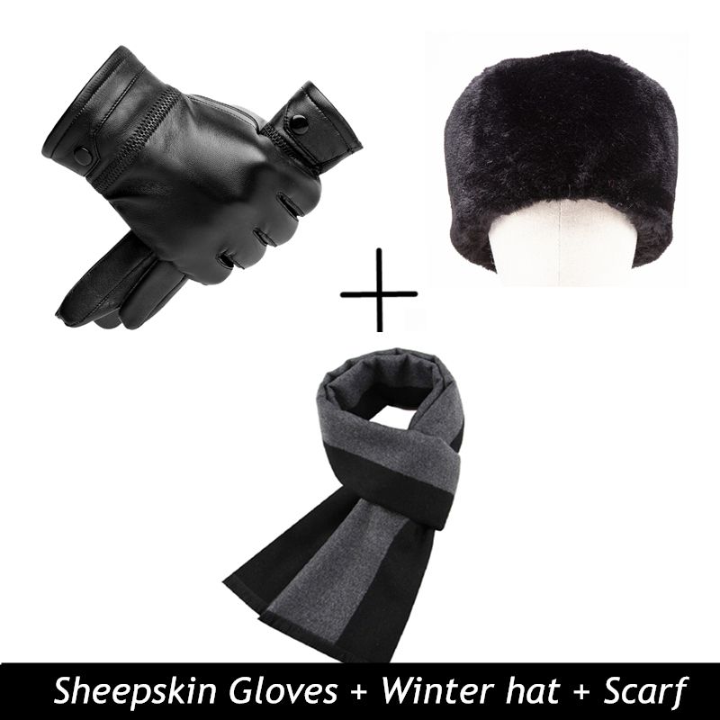 BISON DENIM Men Genuine Sheepskin Leather Gloves Autumn Winter Warm Touch Screen Full Finger Black Gloves High Quality S019