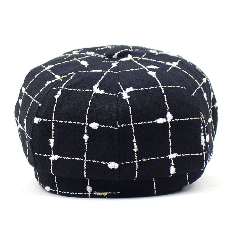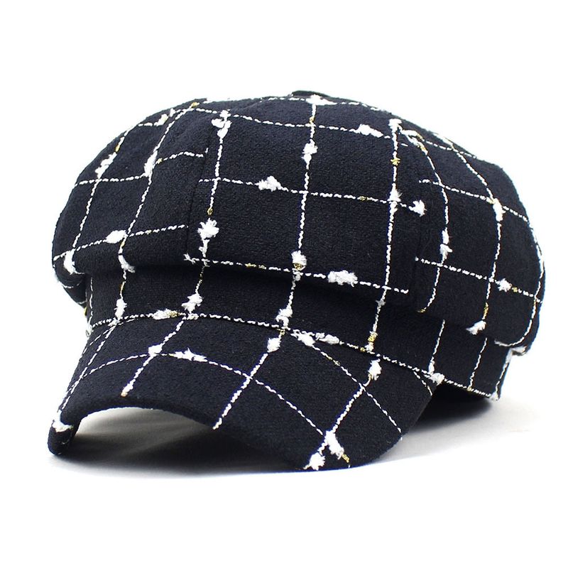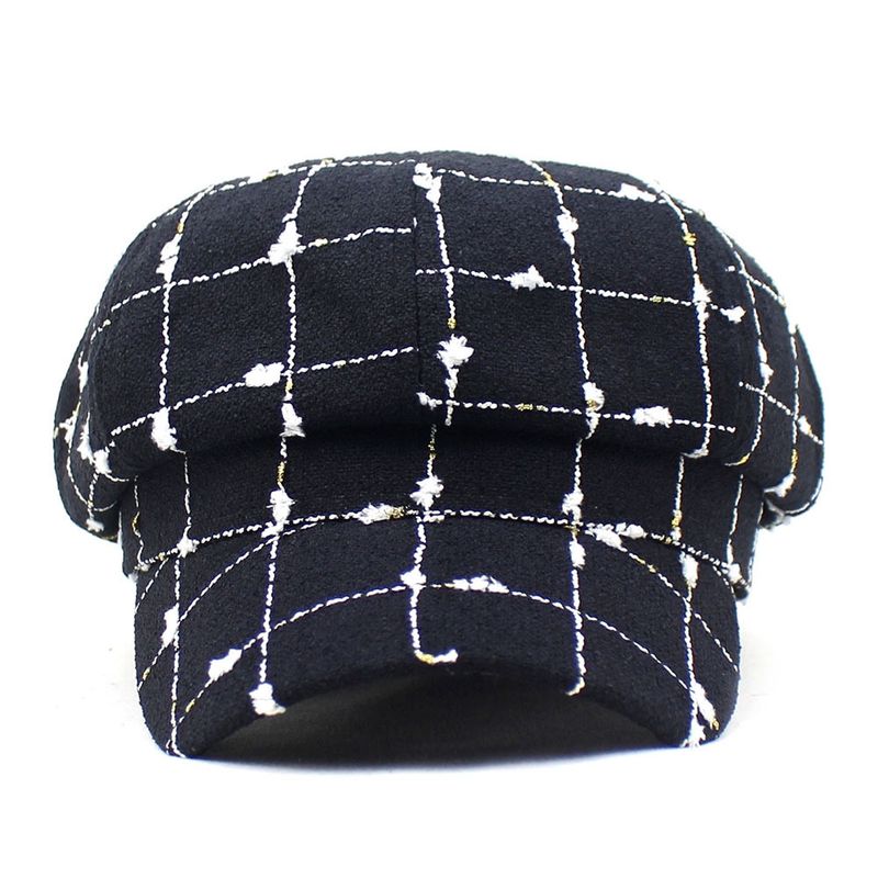 Black And White Plaid Woolen Hat Casual Black M