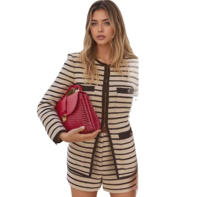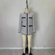 Black And White Striped Round Neck Multi-pocket Fashionable Coat Black And White Stripes M