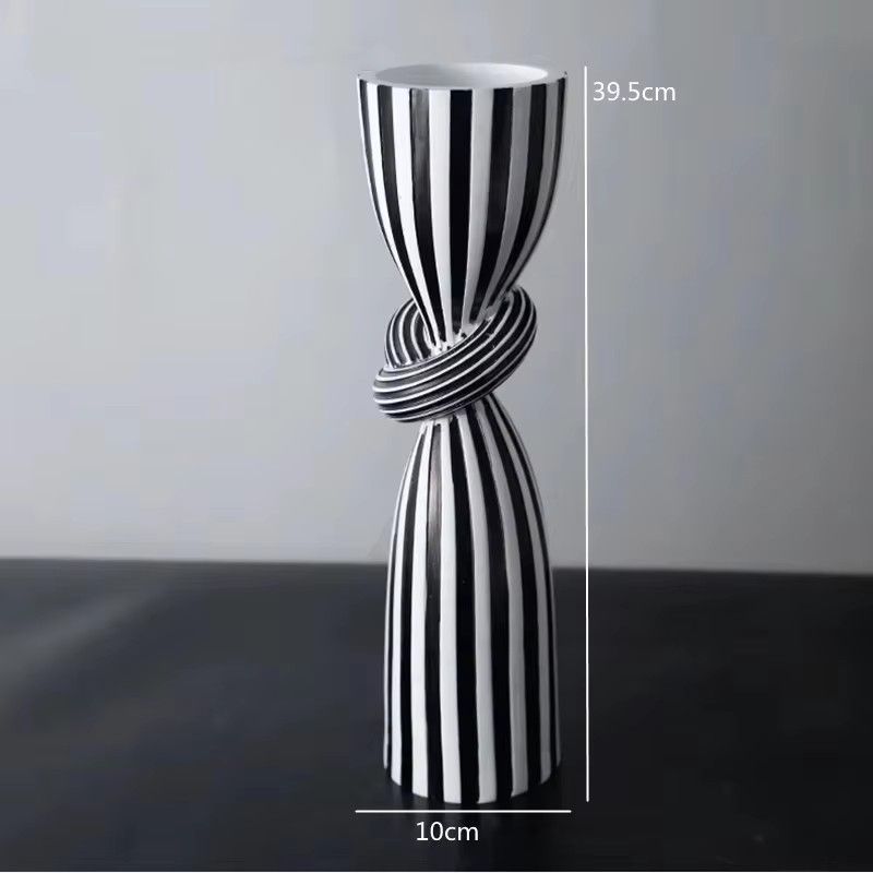 Black and White Striped Twisted Rope Knot Single Candle Holder, Resin, Dining Table Wedding Center Decoration, Modern Decoration