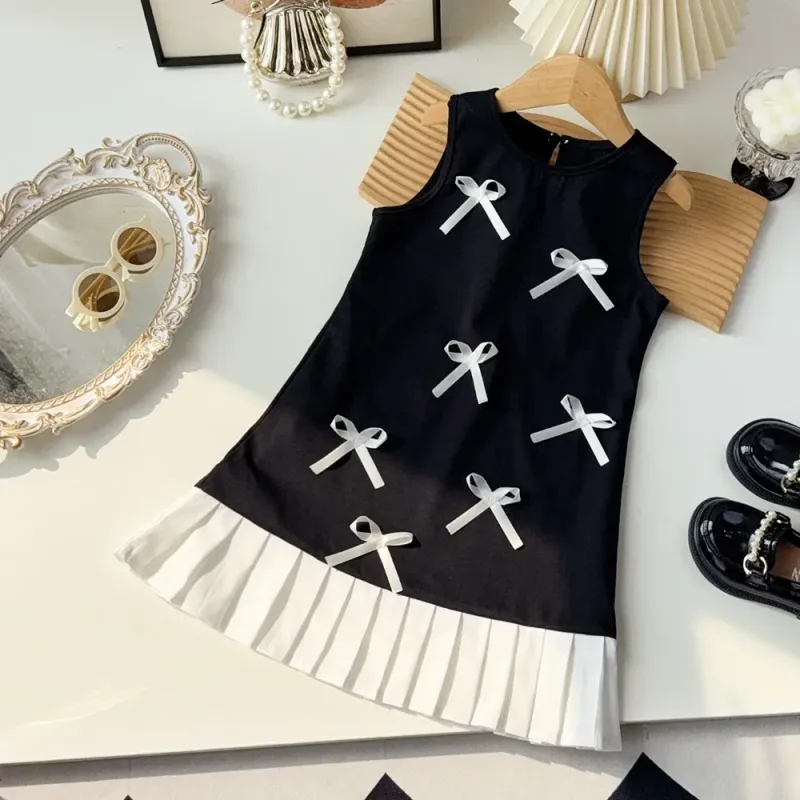 Black Bow Decoration Princess Dresses Korean Version Summer New Sleeveless Girls Dress Sweet and Simple Children's Clothing