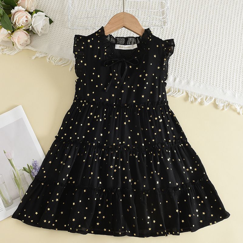 Black Bow Decoration Princess Dresses Korean Version Summer New Sleeveless Girls Dress Sweet and Simple Children's Clothing