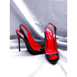 Black fish mouth back hollow toe sandals 12cm ultra shallow mouth sexy red sole high heels for women slim heels, plus size shoes