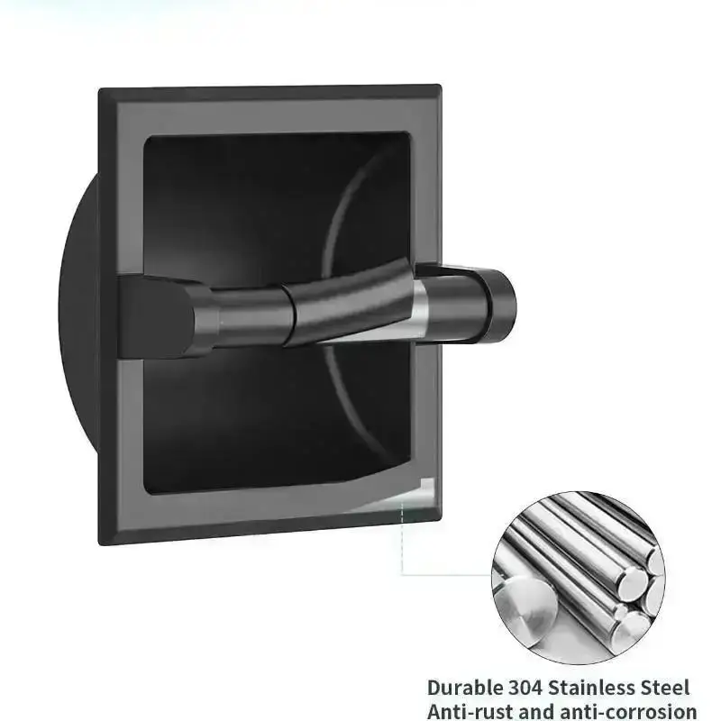 Black Metal Toilet Paper Holder Recessed Toilet Paper Holder With Mounting Bracket Bathroom Wall Mount Toilet Paper Holder