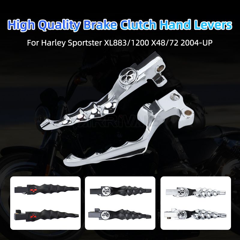 Black Motorcycle Accessories Skull Brake Clutch Levers For Harley Sportster XL883 1200 X48 72 2004-Up