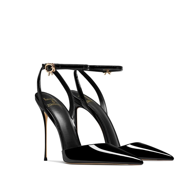 Black patent leather fashionable versatile and comfortable matching skirt new style pointed toe slim heel high heels for women