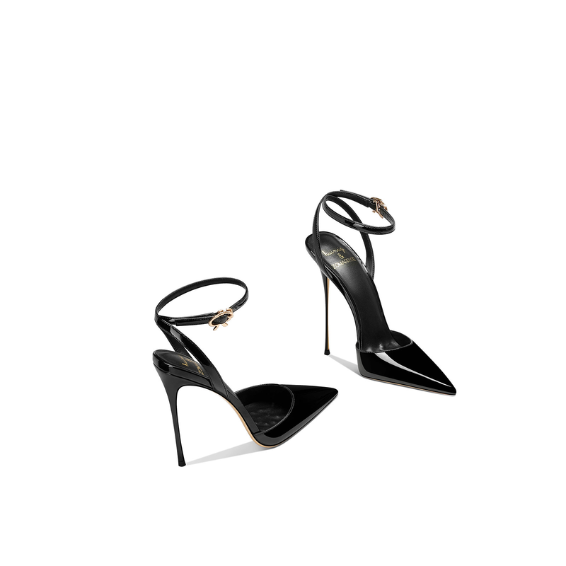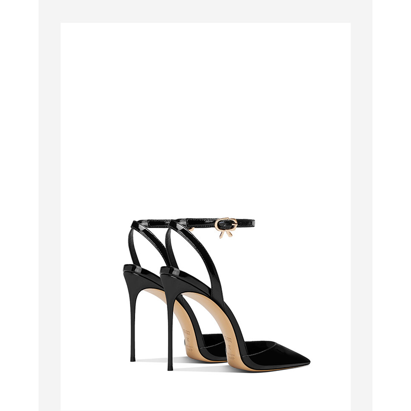 Black patent leather fashionable versatile and comfortable matching skirt new style pointed toe slim heel high heels for women