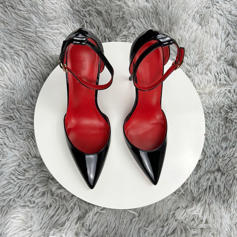 Black Patent Leather Women Ankle Strap Stiletto Pumps Pointed Toe Sexy High Heel Shoes 8cm 10cm 12cm Customize 33-46
