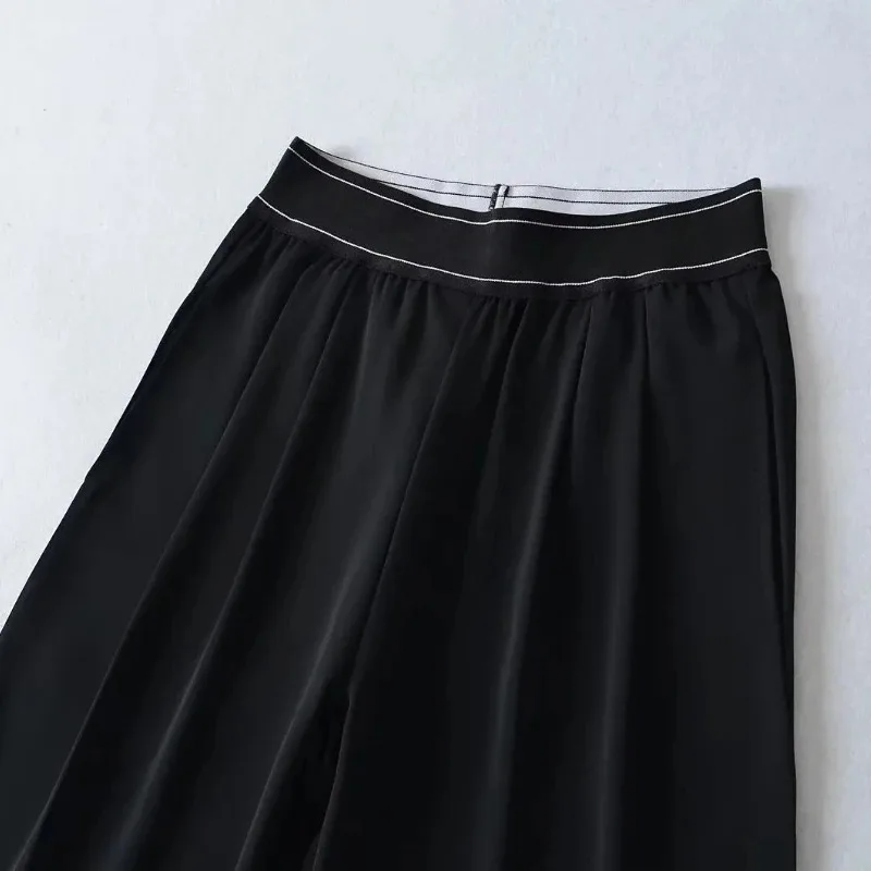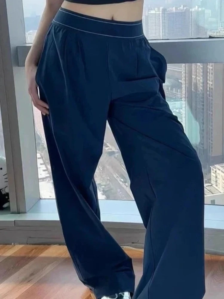 Black Sports Straight Trousers Women Casual Quick-drying Ventilate Wide Leg Pants Spring Elastic Waist High Street Pants Women