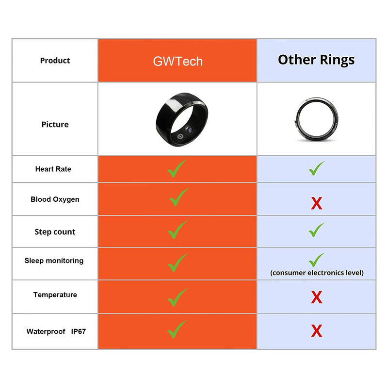 Black Technology Heart Rate, Blood Oxygen, Sleep Monitoring Waterproof Bluetooth Ring Gold