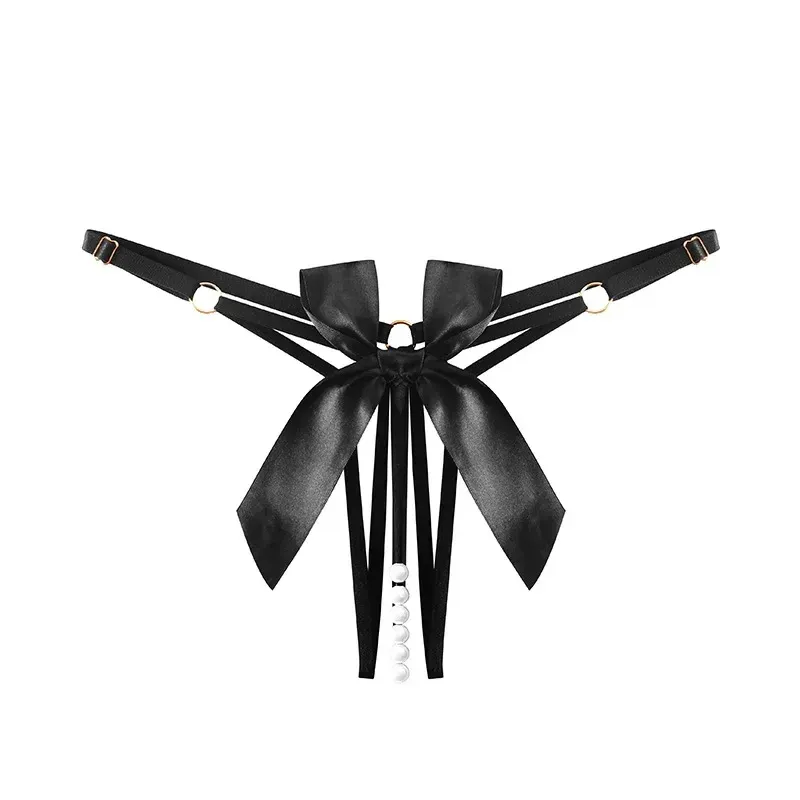 Black Thongs Women's Panties 1PC Sexy Bow Beading Lingerie Female Underwear Low Waist G-string Ladies Трусы Женские BragasMujer