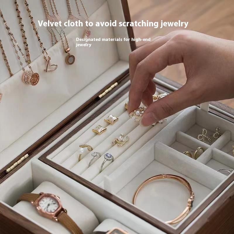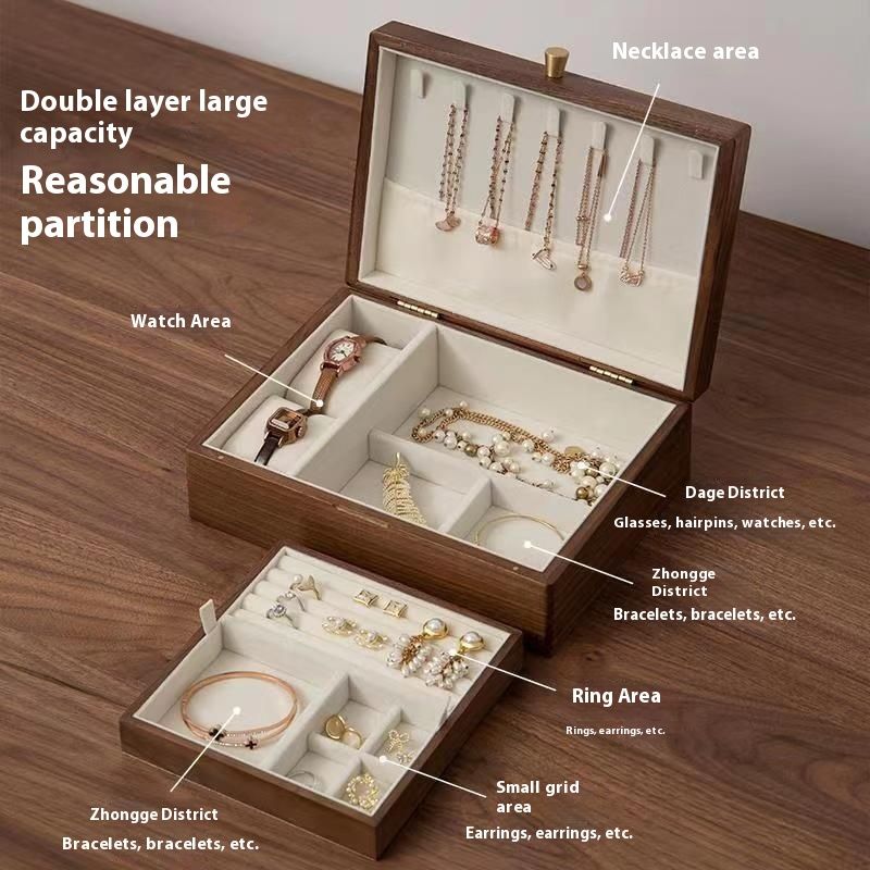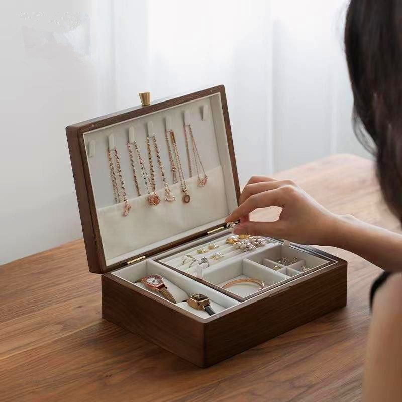 Black Walnut Light Luxury Exquisite Jewelry Storage Box Pine Gray 24X18X8.5
