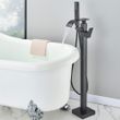 Black Waterfall Free Standing Tub Faucet Floor Tub Filler Faucet Brass Bathroom Tub Faucets with Hand Shower