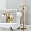 Black Waterfall Free Standing Tub Faucet Floor Tub Filler Faucet Brass Bathroom Tub Faucets with Hand Shower