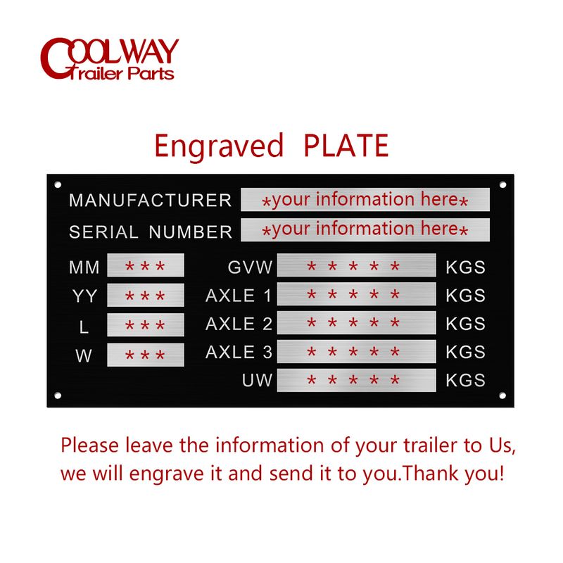 Blank or Engraved Aluminum Trailer Weight Plates Plant Flatbed Min-Digger Vin Chassis Caravan RV Camper Parts