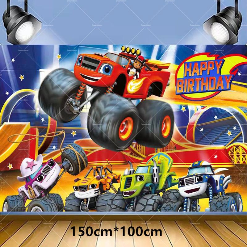 Blaze Monster Balloons Machines Race Car Happy Birthday Banner Party Decoration Cake Topper Disposable Tableware Background Ball