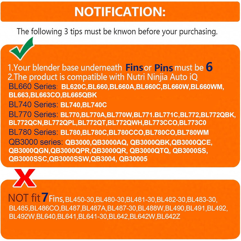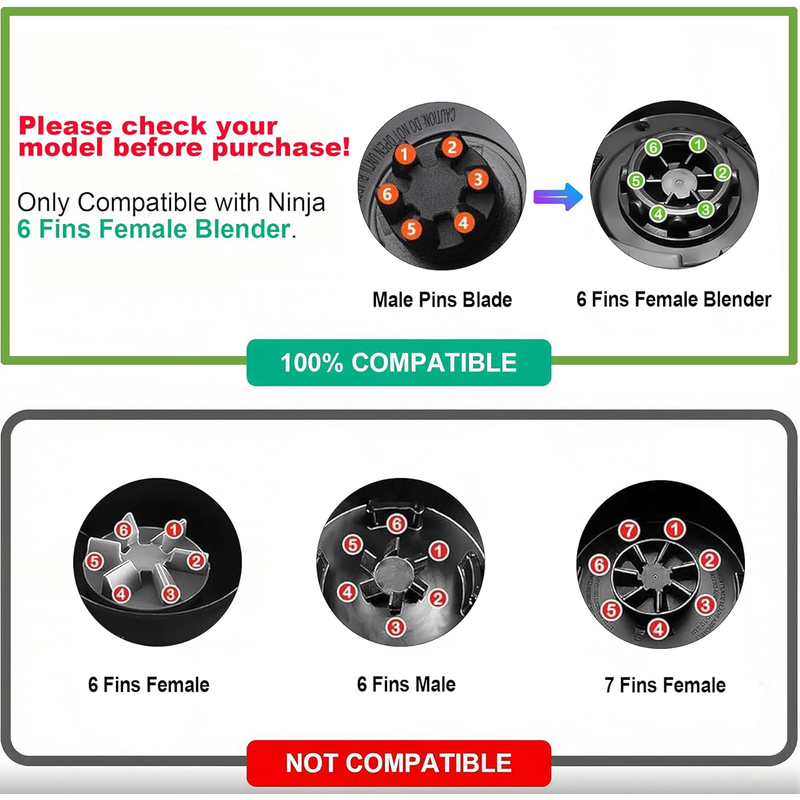 Blender Blade for Ninja Auto IQ BL620C BL660 BL740 BL780 QB3000 16oz Cups 6 Fin Male Blade Replacement Parts