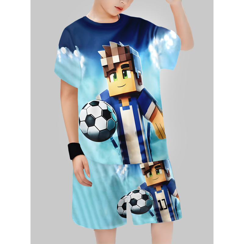 Block Man Digital Printing Cross Border Children's Clothing Casual Short Sleeved T-shirt Boys' Clothing