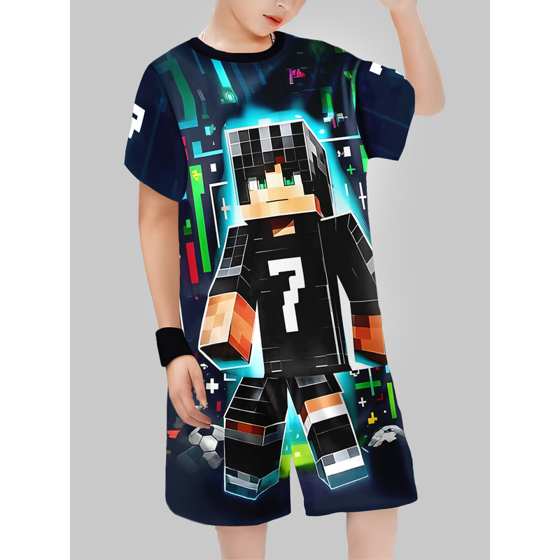 Block Man Digital Printing Cross Border Children's Clothing Casual Short Sleeved T-shirt Boys' Clothing