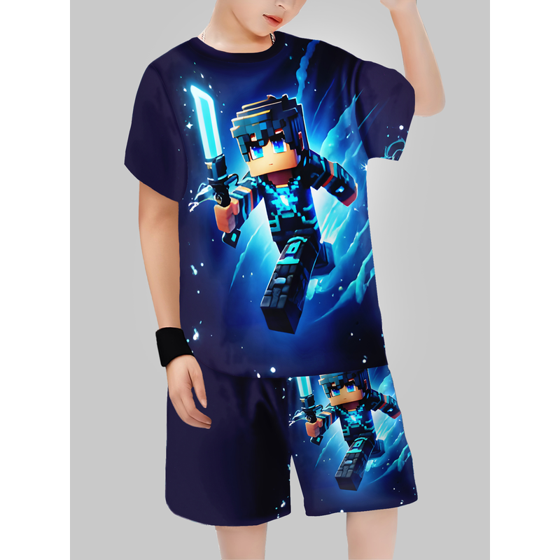 Block Man Digital Printing Cross Border Children's Clothing Casual Short Sleeved T-shirt Boys' Clothing