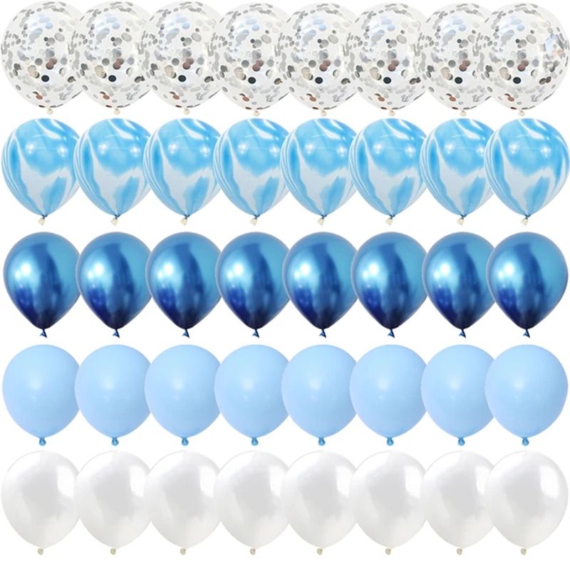 Blue Pink Purple Set Agate Marble Balloons Silver Confetti Balloon Wedding Valentine's Day Baby Shower Birthday Party Decoration