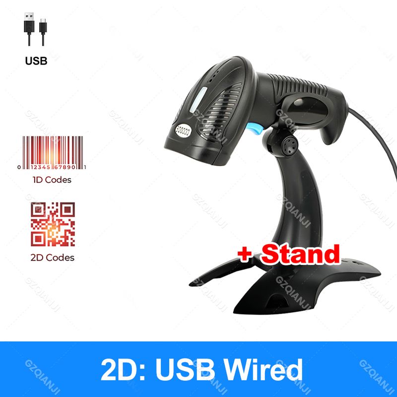 Bluetooth 2D Barcode Reader And Stand 1d QR PDF417 2.4G Wireless Wired Handheld Barcode Scanner USB Support Mobile Phone iPad